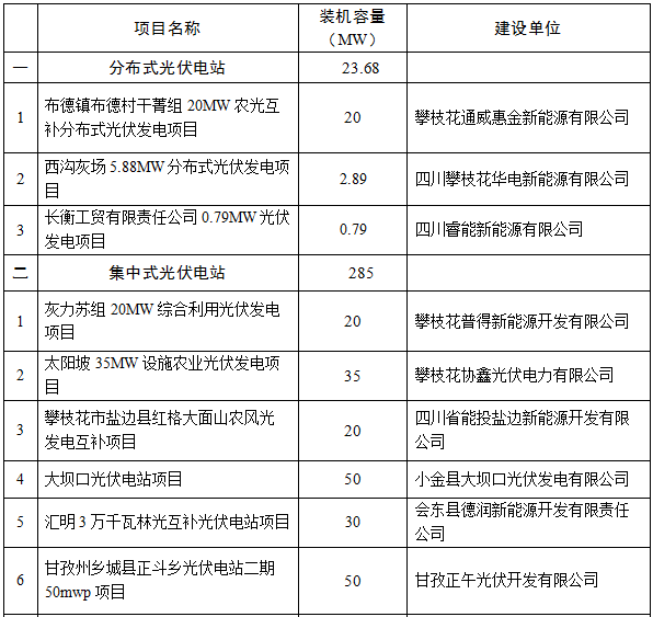 2016年国家下达我省光伏新增建设规模40万千瓦。根据川发改能源〔2015〕211号的规定,优先安排2015年备案结转项目11万千瓦,其余可供优选配置指标按先安排分布式光伏电站,再安排集中式光伏电站的原则进行分配。现将四川省2016年光伏规模指标优选配置项目名单予以公示(详见附件)。