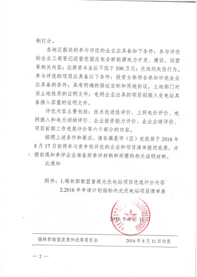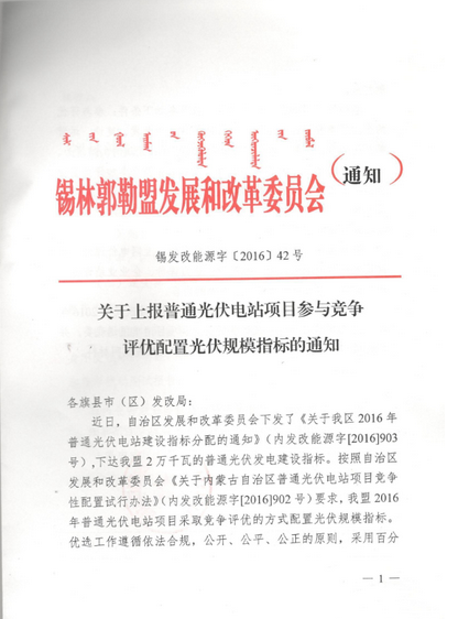 锡林郭勒盟关于上报普通光伏电站项目参与竞争评优配置光伏规模指标的通知