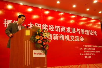2008年2月25日,中国太阳能产业经销商发展与管理论坛在淄博隆重召开。中华全国工商业联合会新能源商会副秘书长史利民,淄博市政协副主席、淄博市工商业联合会会长董学武等领导以及承办方福德集团董事长房富民出席了本次论坛。