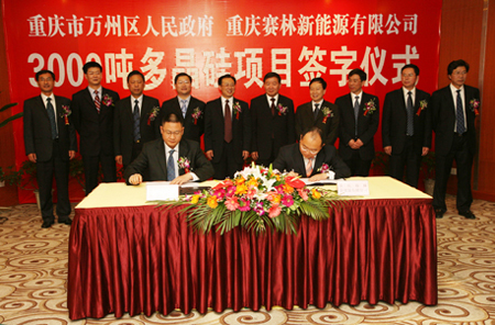 大全多晶硅项目一期工程首条1500吨生产线于去年6月开工建设以来,在国家有关部门、重庆市委市政府的关心支持下,万州区委区政府的极力配合下,以及项目组全体中外专家、员工的勤奋工作下,工程进展顺利,实现了一年开工建设投产的目标,创造了同等项目规模工程进度、工程质量的世界第一。目前,工程绝大部分设备已经安装完毕,正在最后紧张的调试阶段,厂区道路、绿化等工作也在积极推进,预计项目一期工程将于6月份建成投产。