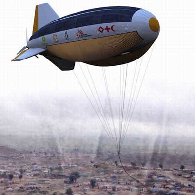 这个设计无疑是很实用的,这种飞艇可以在灾后迅速升空,克服繁杂的道路,快速抵达灾区上空,同时利用遍布全身的CIGS太阳能(第一代为单晶硅太阳能电池,第二代为多晶硅、非晶硅等太阳能电池,第三代太阳能电池就是CIGS(CIS中掺入Ga)等化合物薄膜太阳能电池及薄膜Si系太阳能电池)电池芯片,为灾民提供12个的120V输出及2格240V插槽(当然这个配置可以定制的),相当于一个小电站,给灾民提供应急电力,当然,这个思路可以延伸成:空投通讯设备,卫星电话等;不过现在停留在概念设计阶段,不过可行性很高,我们希望尽快实现。