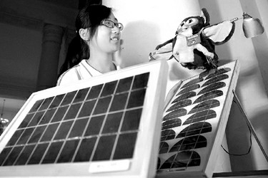上海南洋中学学生在科技节能创新活动中发明了“猫头鹰——007”驱鸟系统。该校校舍的屋顶上安装的太阳能屋顶,由于一些飞鸟在太阳能电池板上栖息,直接影响了太阳能电池的效能。学生们研制了一只仿真猫头鹰放在太阳能板上,接通电源的“猫头鹰——007”会自动舞动翅膀驱赶飞鸟,这样既不伤害鸟类又达到了节能环保效果。