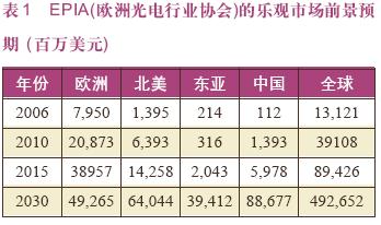 随着关键技术的不断突破,光电将成为一种可行的能源,同时在价格上相比传统能源也极具竞争力。可再生能源的重要性日益凸显,这源于人们希望减少二氧化碳排放以及对化石类能源强烈的依赖性的迫切需求。光电技术蕴含着巨大的环境效益和政治利益。光电是唯一一种能够满足全球长期能源需求又不会排放温室效应气体的能源技术。到达地球表面的这一部分太阳光提供的能量相当于目前全球能源需求的1万倍。而且,我们几乎随处都可以使用太阳能。平均而言,地球上暴露在太阳光下的每一平方米面积每年都能够接收到1700kWh的能量。据欧洲能源研究中心预测,到2050年,太阳能电池将为人类提供总电能需求的20%~30%。