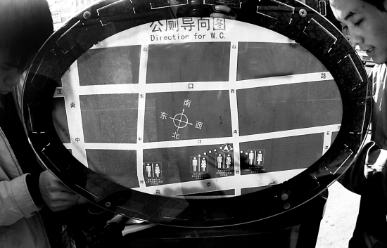 12月10日,10只太阳能语音公厕导向装置亮相上海街头,游客只要在公厕导向图上按动按钮,图上不仅出现附近公厕的位置,并有语音提示,大大方便了游客。市环卫部门表示,如果效果好的话,将向全市推广。
