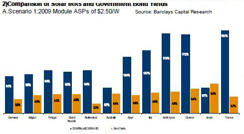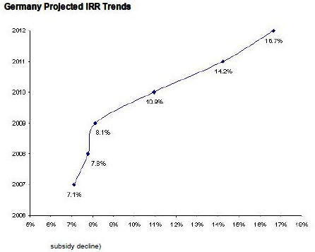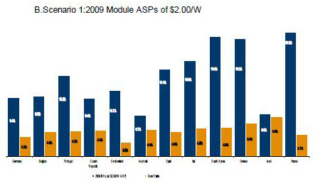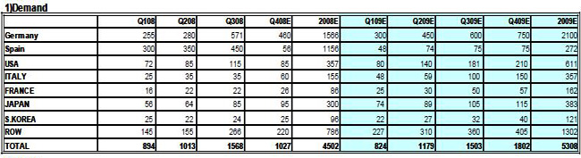 normal style="MARGIN: 0cm 0cm 0pt" align=left>Q-Cells | normal style="MARGIN: 0cm 0cm 0pt" align=left>Q-Cells has provided a new 2008 revenue outlook of EUR1.225B, which is EUR125M less than the prior outlook and reflects lower shipments of 65MWp normal style="MARGIN: 0cm 0cm 0pt" align=left>Looking to 2009, Q-Cells'''' outlook is for shipments of 800MWp-1GWp (versus 1GWp prior) and revenues of EUR1.75 to EUR2.25B normal style="MARGIN: 0cm 0cm 0pt" align=left>This outlook suggests 40% Y/Y shipment growth in 2009 normal style="MARGIN: 0cm 0cm 0pt" align=left>Q-Cells expects price declines in 1H09 to exceed the German degression rate of 8-10%, |