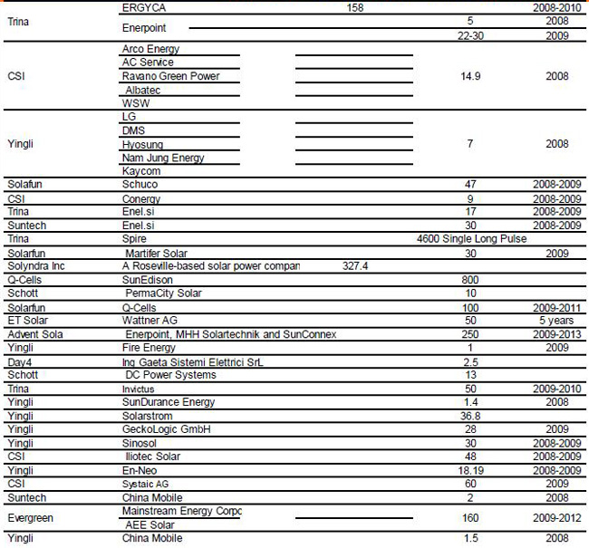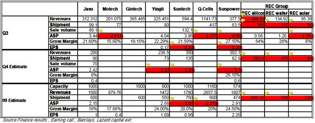 normal style="MARGIN: 0cm 0cm 0pt" align=left>jaso | normal style="MARGIN: 0cm 0cm 0pt" align=left>the company expects revenue in the fourth quarter to be approximately RMB 843 million or $124 million normal style="MARGIN: 0cm 0cm 0pt" align=left>The gross margin to be in the range of 5 to 7 percent normal style="MARGIN: 0cm 0cm 0pt" align=left>year. normal style="MARGIN: 0cm 0cm 0pt" align=left>For the full year 2009, revenue is expected to be in the range of RMB 10.0 billion or $1.5 billion to RMB 11.6 billion or $1.7 billion. normal style="MARGIN: 0cm 0cm 0pt" align=left>Full-year gross margins are expected to be at least 16 percent normal style="MARGIN: 0cm 0cm 0pt" align=left>Total production output is expected to be approximately 800MW with total production capacity projected to exceed 1GW by the end of 2009. normal style="MARGIN: 0cm 0cm 0pt" align=left> |