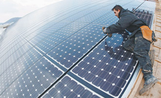 法国一些农民响应政府政策,在农场装置太阳能光电板发电