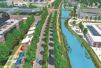 尽管目前经济不景气,Kitson & Partners公司仍放手进行这个开发计划。负责人吉特生在华盛顿表示,他相信这个斥资20亿美元、预定明年开始兴建的小区,将能吸引投资者、商店业主和45,000居民。他保证兴建19,500个住家,制造2万个长久的就业机会,还有足够的“无碳电力”。电力公司表示,它将为新小区600万平方英尺的住宅、工业、商业大楼空间提供太阳能电力。