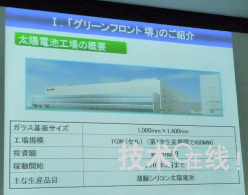 夏普于2009年11月30日向媒体公开了正在大阪府?市建设的液晶面板和太阳能电池面板生产基地“夏普绿色前线?”(Sharp Green Front Sakai)(图1)。夏普在公开部分生产基地的同时,还举行了说明会。