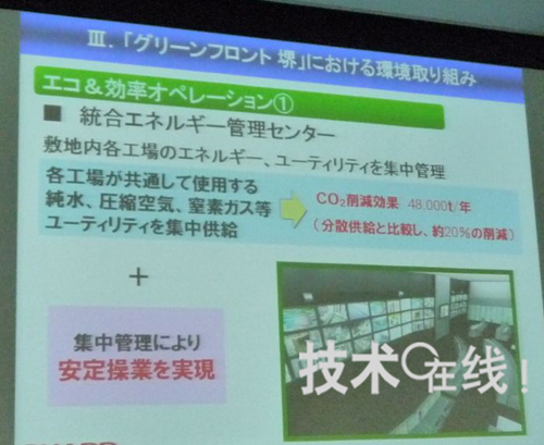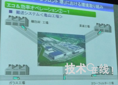 夏普强调重视绿色前线?的环保。比如,液晶面板工厂“单位产量的二氧化碳排量”比该公司的?山工厂削减了35%(以月产7万2000枚生产时,进驻企业的总和)。削减二氧化碳主要是通过以下四项措施实现的:1、导入“综合能源管理中心”;2、导入“厂房间搬运系统”;3、实施循环再利用;4、导入LED照明。