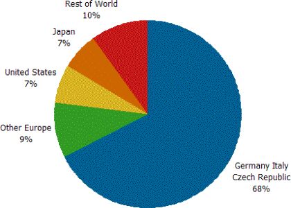 根据最新的Solarbuzz Quarterly Report,2009年第四季度德国占全球市场需求的63%,该数据乃基于2010年4月最新发布的统计数据。
