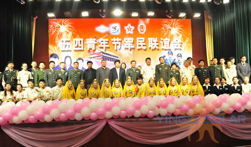 五月的春风情深意暖,五月的激情热烈欢畅,我们迎来了“五四”运动九十一周年。为了展现时代青年人的精神风貌,加强军队与地方的交流沟通,体现新时期的双拥模范性,英利集团与66393部队、消防支队以及高区管委会的青年代表300余人共聚电谷广场商务会议中心,庆祝五四青年节。
