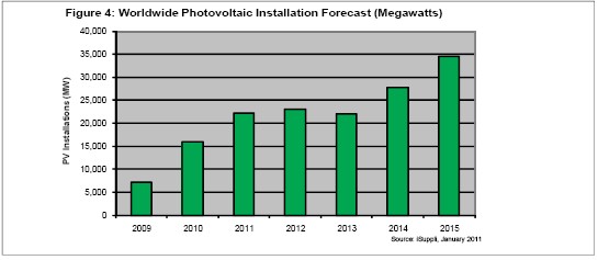 此外,预计2011年西班牙、法国和捷克的PV市场不会扩张,这些国家正在推行严格的措施来限制其国内的太阳能投资热潮。