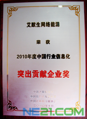 艾默生网络能源荣获“2010年度中国行业信息化突出贡献企业奖”