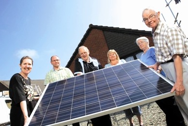近日,英国德拉博尔的居民展示英国能源公司Homesun提够的免费太阳能电池板,他们所居住的街道或将成为英国首个太阳能街道。去年8月,Homesun公司启动了一项耗资10亿英镑的计划,将免费为10万户家庭安装屋顶太阳能电池。只有屋顶朝南的住房才有资格享受这次免费太阳能设施安装,参与者不仅将节约三分之一的电费,也不用支付屋顶太阳能电池的安装费用。