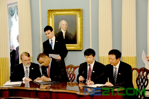 (2011年5月10日,华盛顿)第三次中美战略与经济对话于5月9日在华盛顿召开,作为本次中美战略与经济对话的重要组成部分,中美在清洁能源领域的多层次互动再次成为焦点。在对话举行期间,中国河北廊坊市政府会同中国清洁能源领军企业——新奥集团与美国夏洛特市政府会同全美最大能源企业之一的美国杜克能源公司(Duke Energy)签署了《中美绿色合作伙伴四方协议》。该协议成为了自中美两国政府于2008年签署《中美能源环境十年合作框架下的绿色合作伙伴计划框架》以来,两国间第一次通过政府与企业间各自结对的形式,开展新能源领域的合作。廊坊市市长王爱民指出:“本次合作协议的签署,对推动廊坊市的智能生态建设具有重要意义;同时,新奥和杜克在清洁能源领域开展广泛的合作,有助于加速新技术的产业化,促进清洁能源的应用与普及”。
