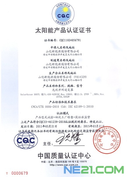SO系列金太阳认证的获得标志着山亿在技术上又向前迈进一大步,同时为公司在国内市场的开拓起到强有力的推动作用,与此同时也为我公司参与国家重大项目提供入场券。