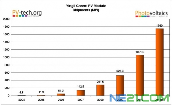 第一季度所遭遇的较强的市场需求,以及进入若干新兴市场的举动,如东南亚、南美和中东地区等,都显示出英利管理层对其此前所公布的2011年全年出货量预期值的实现充满信心,即同比2010年财政年度上涨了60.1%之64.8%。
