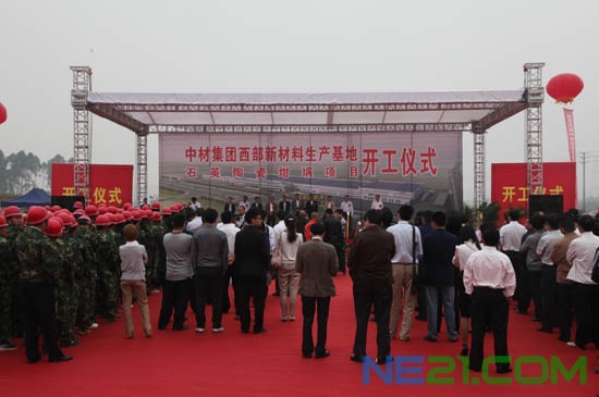 成都市委常委刘超、市委副秘书长张小彦,新津县委书记、成都市新材料产业功能区建设领导小组副组长巫敏,新津县县长王道明,中材集团董事长谭仲明、总经理刘志江,中材股份副总裁、中材高新董事长刘燕,中材高新总裁阎法强出席开工仪式。刘志江、巫敏、阎法强致辞,仪式由新津县委常委周晓平主持。