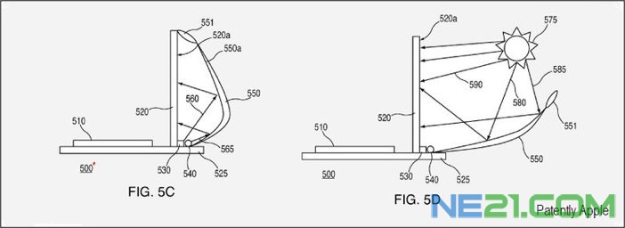 在苹果看来,可以通过不同角度的折叠反光板来给显示屏增加亮度,此外还有传闻说他们也在考虑将太阳能电池融合进笔记本。