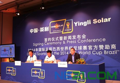 中国保定和瑞士苏黎士2011年6月8日电 /美通社亚洲/ 英利绿色能源控股有限公司(纽约证券交易所股票代码:YGE)(产品商标为“Yingli Solar”)(简称“英利绿色能源”或“公司”),一家全球领先的太阳能公司,也是全球最大的垂直一体化光伏发电产品制造商之一,今日在德国慕尼黑举行的 Intersolar 展会上发布重要声明,英利绿色能源成为2014年巴西世界杯足球赛的官方赞助商。在与国际足球联合会(简称“国际足联”,英文简称“FIFA”)联合召开的新闻发布会上,英利绿色能源以及国际足联的管理层将回答来自全球记者的提问。新闻发布会的亮点是展示2014年世界杯的冠军奖杯,以及由英利绿色能源董事长兼首席执行官苗连生先生和国际足联市场总监 Thierry Weil 先生做的开场致辞。