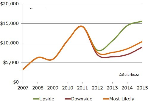 索比光伏网讯:据Solarbuzz最新发布的光伏设备季度报告,预测到2012年光伏设备支出将骤减至76亿美元,同比跌幅为47%,而2011年支出额最高为142亿美元。设备支出的下滑将影响今年下半年光伏设备的收益额,还将导致企业不得不下调2012年的盈利目标。