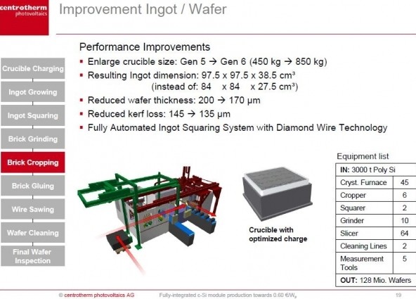 这两款设备均由centrotherm SiTec公司引进,并结合了centrotherm光伏集团的硅料专家的专长,并应用了先进的金刚石线锯切割技术,从而保证了在进行超高精准度切割的同时,保证了大规模的生产和对生产成本的优化。