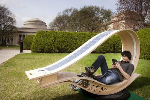索比光伏网讯:这个叫SOFTRockers的东东由MIT的KillianCourt发明,在古典的软椅上面加了一个太阳能电池板。这样你便可以在大太阳天,一边乘凉,一边玩电子产品了。