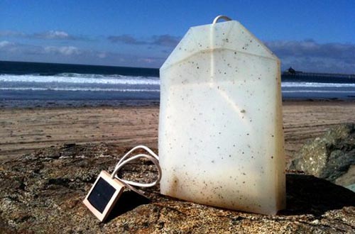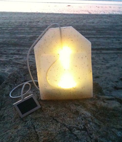 索比光伏网讯:这是一款茶包形状的创意灯具,茶包是灯,标签是太阳能板,茶包提线则是太阳能板与灯泡的连接线。它依靠太阳能充电,发光时,茶包上还会出现黑色的斑点,看上去就像真正的茶叶一样。它高12英寸,线可以使它方便悬挂。售价80美金。