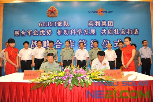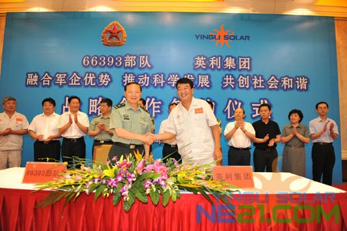 为贯彻落实胡锦涛总书记“七一”重要讲话精神,更好地加强军企优势融合,推动科学发展,创建社会和谐,7月27日,英利集团与中国人民解放军66393部队在电谷锦江国际酒店签署战略合作议定书,就携手推进军民共建创新发展达成系列协议。