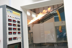 工研院量测中心主任段家瑞表示,太阳光电测试实验室提供太阳能模块的防火测试,主要是为了确保太阳光电模块对外部火焰具备足够的抗燃性,整套检测系统,能容纳2.6公尺x2.2公尺大的太阳光电模块,整体系统可耐燃至摄氏1,200度,透过模拟火源、以及风洞产生的风力变化,测试出火焰长度与温度对于太阳光电模块的影响程度,并全程以监控系统进行录像记录,以确认太阳能板材料的耐燃性。而为了因应太阳光电模块可能受到房屋结构与屋顶角度不同而有差异,还特别设计电控调整功能,依据不同环境设定,让太阳光电模块的倾斜角度可从0度到30度加以调整。
