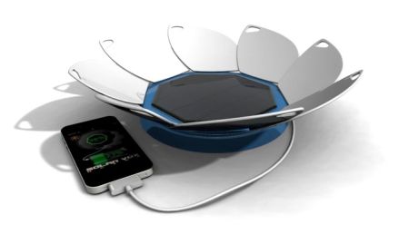 这个太阳能充电器是原来“太阳能Vox”的2.0版本。它抛弃了原来笨重、大体积的设计,采用了更紧凑、轻便的外形。花瓣状的挡板展开后,露出中心的太阳能电池板。这样能够有效地将太阳光线集中到太阳能吸收的最佳位置。