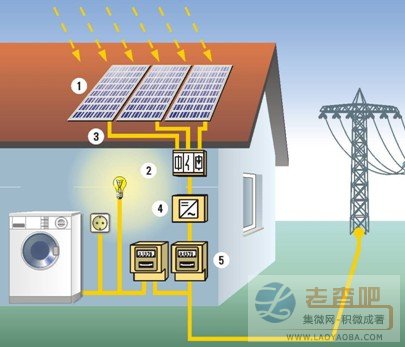 ① 太阳电池 ②开关/保护/防雷 ③电缆 ④并网逆变器 ⑤电度表(光伏电量)