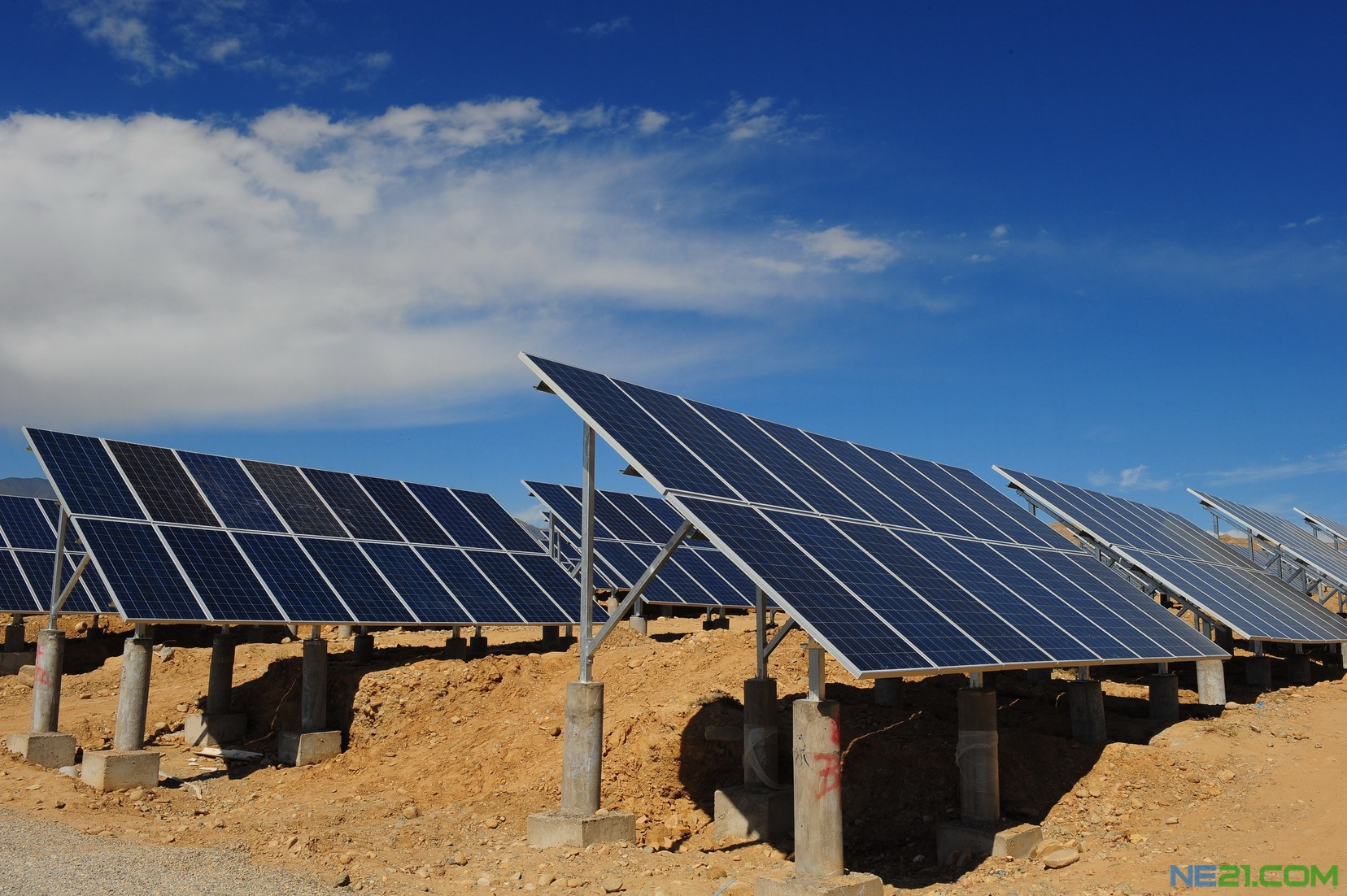 站在格尔木市东、南出口,放眼望去,一个个规划上百亩、上千亩、甚至上万亩的光伏电站项目正在如火如荼地建设,密密匝匝排列的一块块太阳能电池板就像给荒漠穿上了“铠甲”,挖掘机、装载机、翻斗车的轰鸣声不绝于耳,运输建设物资的车辆排成了长龙。各个光伏电站都在抢进度,赶工期……光伏电站的加快建设不仅带动了当地整个光伏产业的快速发展,而且也让当地群众受益。