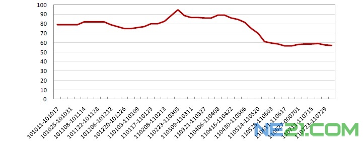 而正是由于德意两个主要终端市场的需求萎靡,产品价格暴跌、库存居高不下、企业业绩惨淡等字眼成为2011年上半年全球光伏产业的最显著特征。相关数据显示,2011年5月,积压的光伏组件库存一度达到10GW,各大光伏企业为了降低库存压力,纷纷下调光伏产品价格,大有价格战一触即发之势。多晶矽材料、矽片、电池片和组件的价格已分别从2010年12月份的80美元/千克、3.82美元/片、1.4美元/瓦和1.74美元/瓦下降至2011年6月的55美元/千克、2.03美元/片、0.78美元/瓦和1.27美元/瓦,下跌幅度分别为31%、46.8%、44%和27%。其中,矽片和电池片的价格跌幅最大,已逼近成本价。