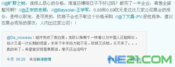那么,欧洲人真的就需要这样低价的组件吗?世纪新能源网主编张松认为:其实,不然。在欧洲是品牌企业的天堂、是优质产品港湾、是一个有良好售后可以持之以恒为消费者提供最佳性价比的优秀企业的市场。一味以低价吸引市场,只能让消费者藐视、业内同行唾弃。而一个真正的优秀企业将受到消费者的眷恋,业内企业的尊敬。不论是在欧洲、北美、非洲还是在我们伟大的中国。追求合理的市场价格、是一个有责任心的企业最基本的准则!