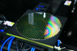 此外,核研所在研发「聚光型太阳能发电(Concentrated Photovoltaic;CPV)」系统技术上已有显著成果。此次核研所发表的重大研发成果计有3项:第一,在高效率III-V族太阳能电池元件研发方面,其能量转换效率已达到38%以上。其次,太阳能电池磊晶尺寸提升至8寸(如图1),大幅减少太阳能电池磊晶及制程成本的支出。第三项,HCPV系统研发方面,已完成MW级高聚光太阳能发电示范系统(如图2)的建置。