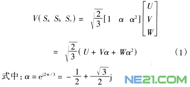 图2中共有8个矢量,其中V(O O O)和V(1 1 1)为零矢量,幅值为O;其余6个矢量为有效矢量,幅值为