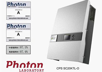 索比光伏网讯:在全球光伏行业权威杂志PHOTON最新的测评中,正泰电源系统的CPSSC20KTL-O逆变器得到双A级评定。转化效率在中辐照条件下达97.1%,高辐照下更高达97.4%,都达到A级标准,跻身全球测试榜单前10名。