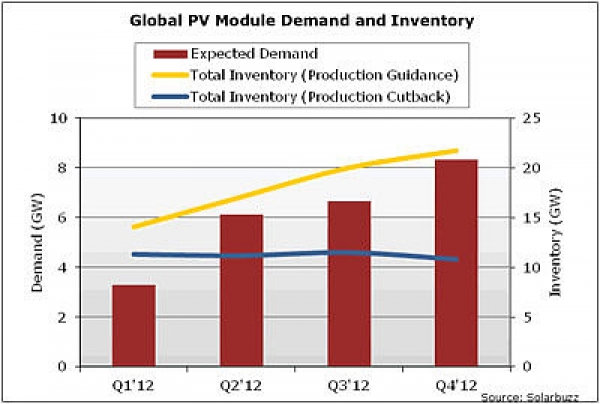 Solarbuzz发出警告称,如果厂商不对产量做出大幅调整,那么明年年底时组件的存货量将达到22GW。造成供需失衡的主要原因在于今年太阳能发电系统的的实际装机容量严重低于预期。