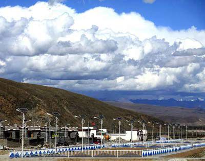 西藏当雄县境内念青唐古拉雪山脚下的农牧民用上了先进的太阳能路灯