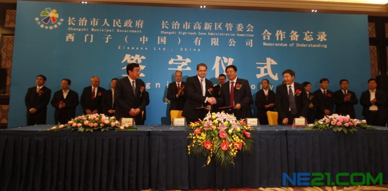 9月27日,西门子与潞安矿业(集团)有限责任公司在山西太原就成立生产电气驱动产品的合资公司签署了意向书。计划成立的合资公司将以山西防爆电机(集团)有限公司为主体,双方希望通过合资企业的形式使其得到进一步发展。西门子与山西省长治市人民政府以及山西省长治高新技术产业开发区管理委员会也在当天联合签署了合作备忘录,长治市政府对即将成立的合资企业将给予积极支持。