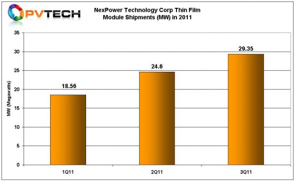 总部位于台湾的联相光电(NexPowerTechnologyCorp)表示,尽管业务环境艰难,但是市场对硅薄膜组件的需求一直没有降低,到今年三季度底出货量几乎要超过去年出货量74.10MW。联相光电的组件出货量到目前为止已经高达72.51MW,今年上半年同比增长24%。仅在第三季度的基础上,公司声称出货量同比增长64%。