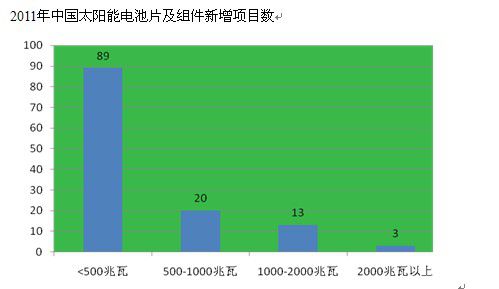 各地涌现光伏投资热,行业再度兴起增资扩产热潮。从上游多晶硅到中游硅片再到下游电池片,各地均出现大幅投资扩张的现象。粗略统计,2011年全国新上马光伏电池片及组件项目超过125个,其中产能达2GW以上的超大项目3个,1-2GW的大规模项目13个。2011年4月,投资总额135亿元人民币的晶澳(合肥)新能源有限公司项目正式开工,将建成3GW垂直一体化光伏产品生产基地。