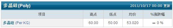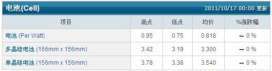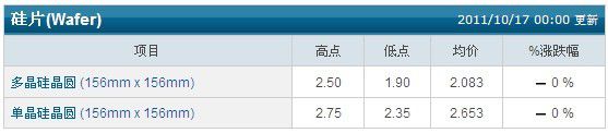 索比光伏网讯:最新报价显示,多晶硅价格基本与之前持平,156mm多晶硅片价格无变化,156mm单晶硅片价格无变化,太阳能电池平均价也无变化这也许证实了业界对于光伏" title="光伏新闻专题">光伏产品四季度需求量的预测——四季度虽然光伏产品价格下跌依然存在,但市场需求将逐步回暖,在一定程度上将缓解价格的大势回落,下跌幅度将较小。