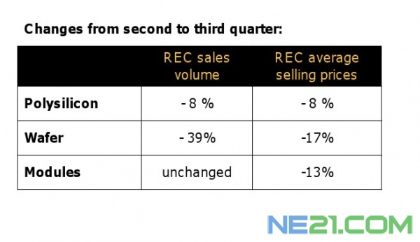 REC表示,第三季度的多晶硅平均销售价格比第二季度下降了8%,硅片价格下降了17%,组件价格下降了13%。除了发布第三季度的财务结果,REC还表示董事会已经决定永久关闭在Herøya的一个生产能力500MW的旧硅片工厂,包括在Glomfjord的275MW硅片综合工厂以及在Narvik的180MW的电池工厂。