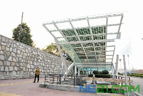 中国首条太阳能地下通道由湖南神州光电能源有限公司设计建造完成,通道四个出入口的雨篷上总共安装了108块高效彩色太阳能电池板,总装机容量为14KW,为通道中88根LED日光灯提供照明电力,为了确保阴雨天气也能正常供电,另外设置了若干蓄电池组将晴天太阳能所发电力储存在蓄电池内,即使是连续四五天下雨,也能够确保地下通道内的照明供电,而不需要使用外接电源。淡绿色的太阳能电池板安装在雨篷中央,不仅可以源源不断的提供电力,同时也为城市景观起到装饰美化作用,一旦大面积推广将成为城市的一道亮丽风景。