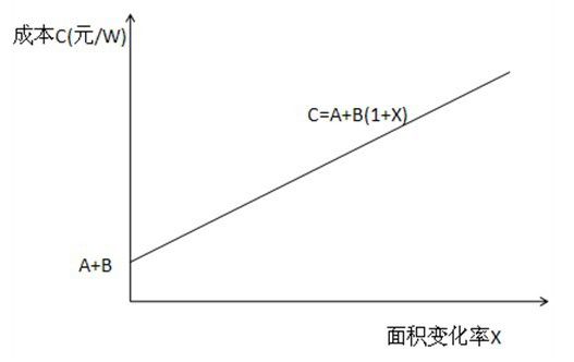 光伏组件成本C(元/W)与面积变化率X之间的关系