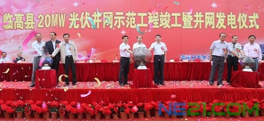 2011年 11月8日,海南天能电力有限公司在海南临高县投资建设的“临高县20MW光伏并网示范工程”项目顺利竣工并网发电。