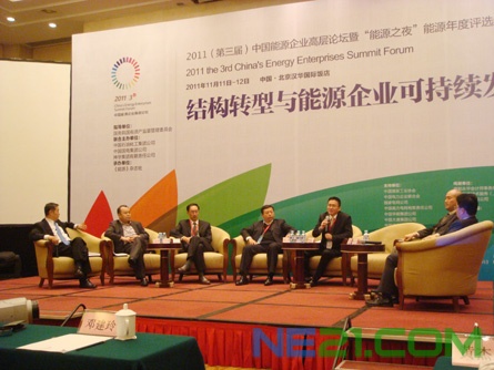 11月11日,新奥集团受邀出席2011(第三届)中国能源企业高层论坛暨能源年度评选活动,与同行企业共论未来能源发展大计,并以多年来对国家能源事业发展的贡献,获得“能源企业低碳之星”奖项。集团副总裁刘敏代表新奥出席会议。活动期间,新奥集团与中国国电集团、中国石化集团、中电国际、国网能源研究院、中国华电集团、清华大学等企业及研究机构,就“结构转型与能源企业可持续发展”的主题展开交流与讨论,集团副总裁刘敏代表新奥作为嘉宾参加了交流活动,分析了宏观经济环境对于能源行业未来可持续发展的影响,并着重介绍了新奥近来的发展情况。